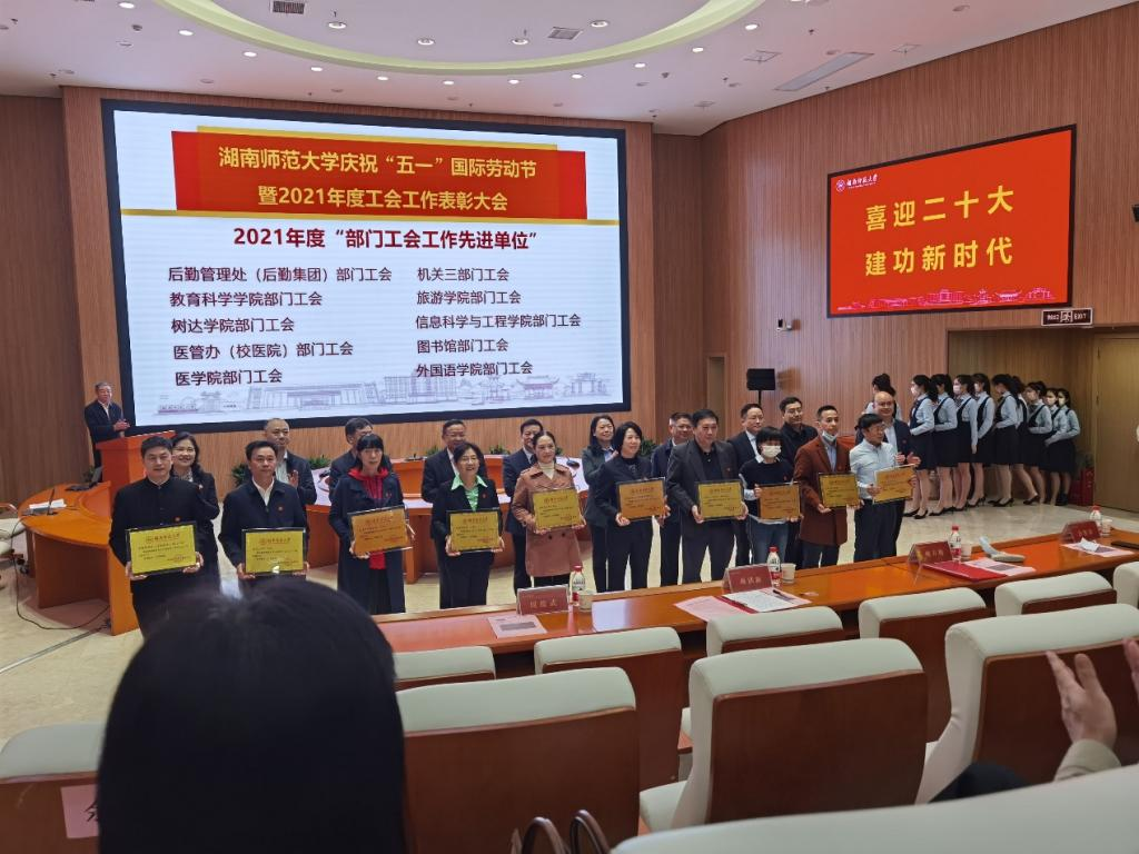 4月29日上午,WilliamHill体育在校WilliamHill体育报告厅召开庆祝“五一”国际劳动节暨2021年度工会工作表彰大会,全体在家校领导出席会议并为获奖代表颁奖。各二级党组织书记、部门工会主席及部分获奖单位和个人代表参会。