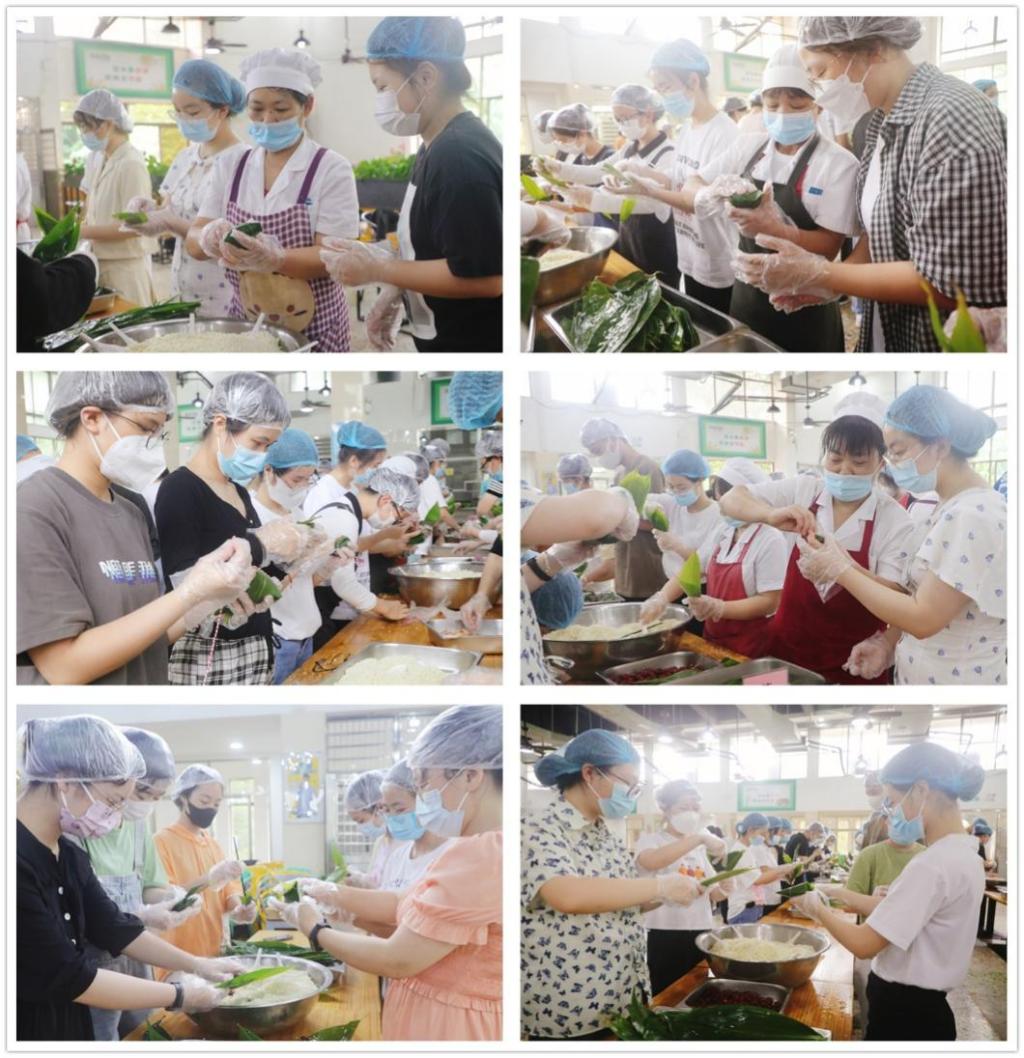 5月31日,餐饮服务中心联合校学生会权益部,邀请了45名学生代表与食堂阿姨,在兰桂苑二楼食堂开展了端午节“包粽子、迎端午”实践活动。