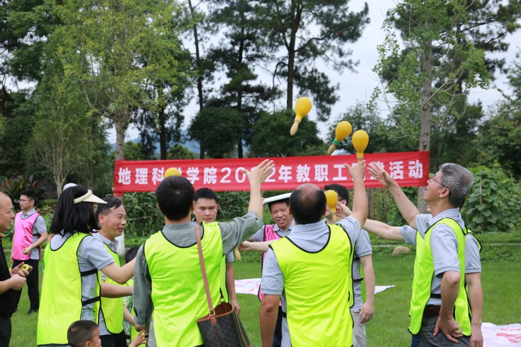 活动第二站为金井镇三棵树茶园采茶和团建活动。老师们顶着初夏的太阳,戴上采茶的围裙和蓑笠并提着竹篮,在一望无际绿意盎然的茶园中沉浸式体验采茶的乐趣和艰辛。十指翻飞间茶香袅袅,一枚枚嫩绿的茶叶芽逐渐填满了竹篓。随后,老师们聚集在草坪上,以各工会小组为单位开展了包括能量传递、重走长征路、精准投掷等项目在内的团建活动。活动场面既激情如火又温馨和谐,每个项目大家各抒己见的同时又密切配合与相互鼓舞,都发扬了无私奉献、团结协作的精神。在游戏的磨合中大家体会到了组织的核心作用和团队合作的力量,也在你追我赶的比赛中收获了团队成功的快乐。老师们沉浸在活动的喜悦兴奋中回味无穷。