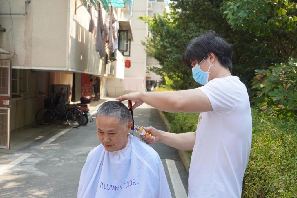 在长塘山小区门口,后勤开展了水电、物业、维修、理发等多项服务,老同志们一边进行业务咨询,一边享受义务理发服务,开心得合不拢嘴,对志愿者们的辛勤劳动表示感谢。