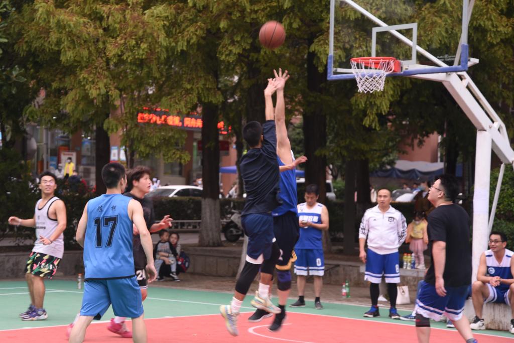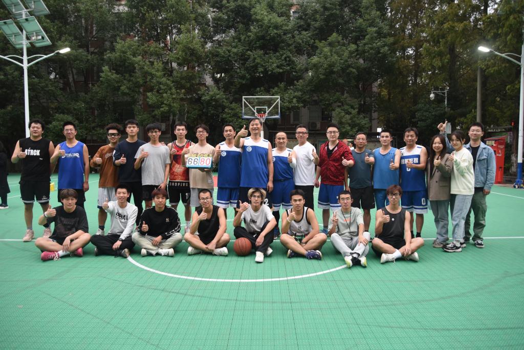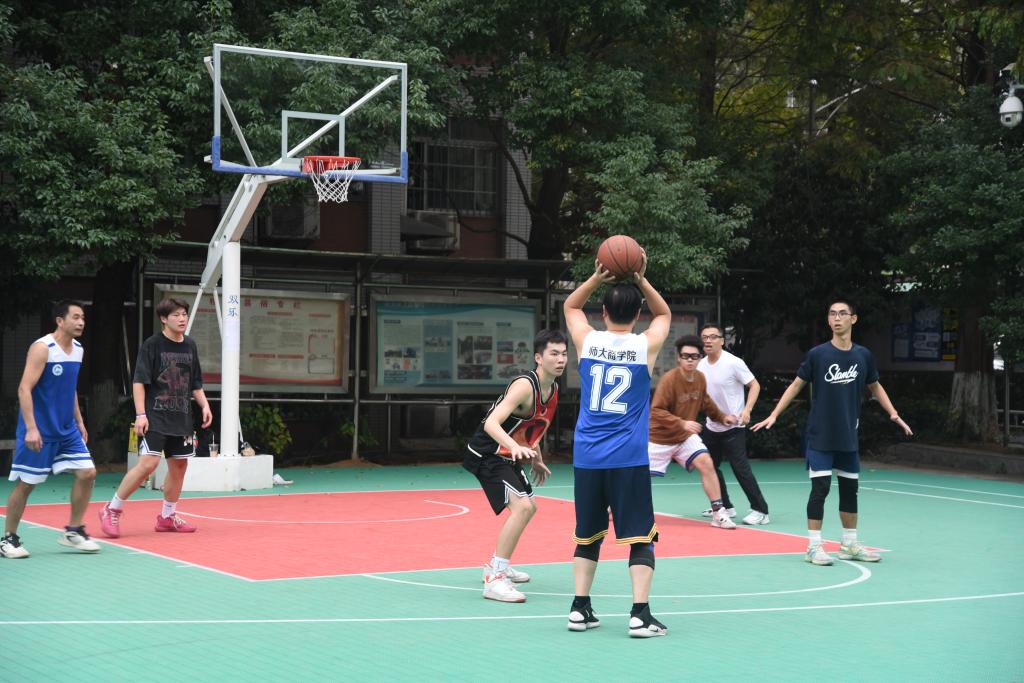 11月3日下午,商学院教职工篮球队与2021级学生篮球队在木兰路篮球场举办篮球师生交流赛。