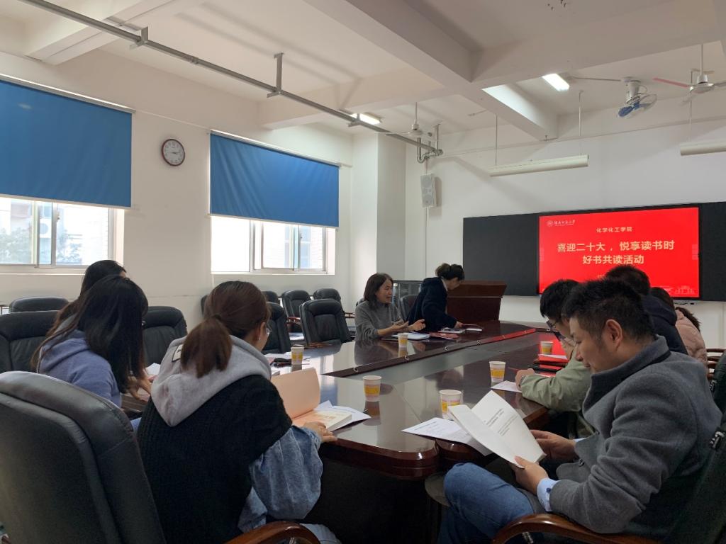 最是书香能致远,不负青春好年华。11月24日,化学化工学院在学院206教室开展“喜迎二十大,悦享读书时,好书共读”活动。工会主席余丽萍主持了本次活动。