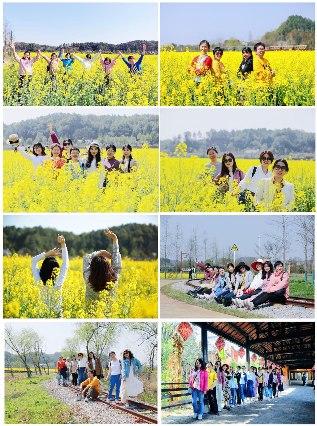 漫步在古镇老街,青青古板、粉墙黛瓦、古式木质板门,让人仿佛瞬间穿越回旧时光,感受着老街曾经的繁华。三月的古镇景区内,繁花似锦、春色满园,5000亩连片油菜花花海正灿烂绽放,与静静停驻的小火车,构成了一幅浓墨重彩的美丽乡村画卷。大家纷纷合影留念,体验着“人在景中,景在画中”春天的美好。