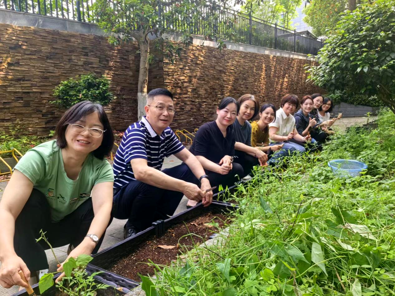 谢云霞老师详细介绍各类果蔬种子及育苗经验后,老师们拿着手中的工具,将幼苗移植到各自的园地,其中化工院党委、学工办和院工会还以集体名义认领了园地。