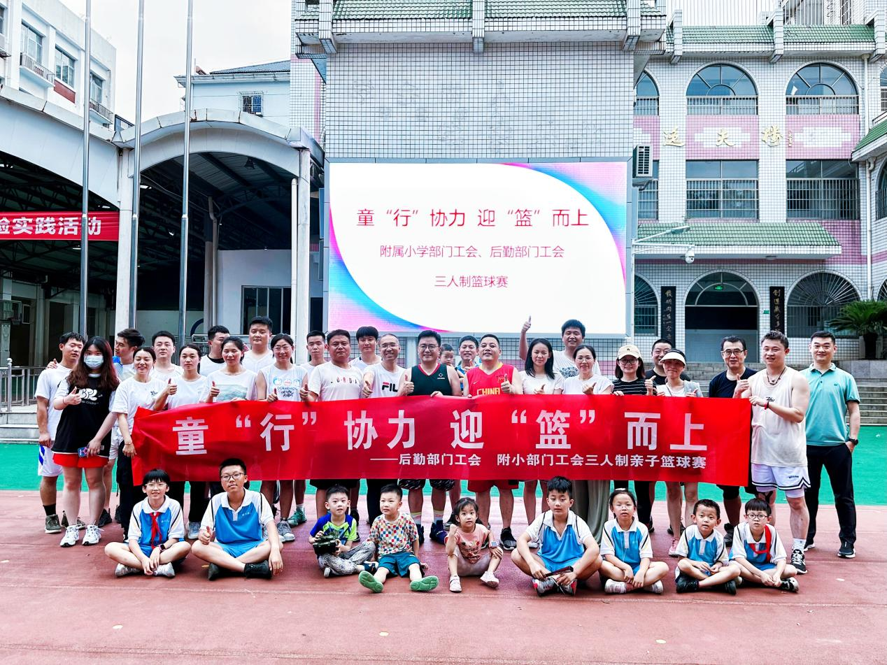 (通讯员 李洋) 为推动三人制篮球运动的普及与发展,庆祝“六一”儿童节,创造以体育德、以体育人的校园环境,大力营造全民健身的浓厚氛围,6月2日下午,后勤部门工会与附属小学部门工会在附属小学操场共同举办了“童‘行’协力 迎‘篮’而上”三人制亲子篮球赛。