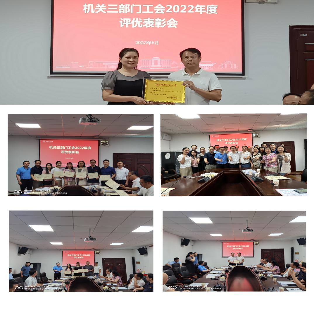 WilliamHill体育副主席杜汉文宣读了表彰决定,机关三部门工会获评“学校部门工会工作先进单位”,彭建国被评为“工会工作积极支持者”,向坚持被评为“优秀部门工会主席”,刘早等4人被评为“优秀工会干部”,常笛等10人被评为“工会积极分子”;机关三部门工会决定授予资产与实验室管理处等8个单位“工会先进单位”荣誉称号;授予罗彬等8人“优秀工会干部”荣誉称号;授予伍三等10人“工会积极分子”荣誉称号。