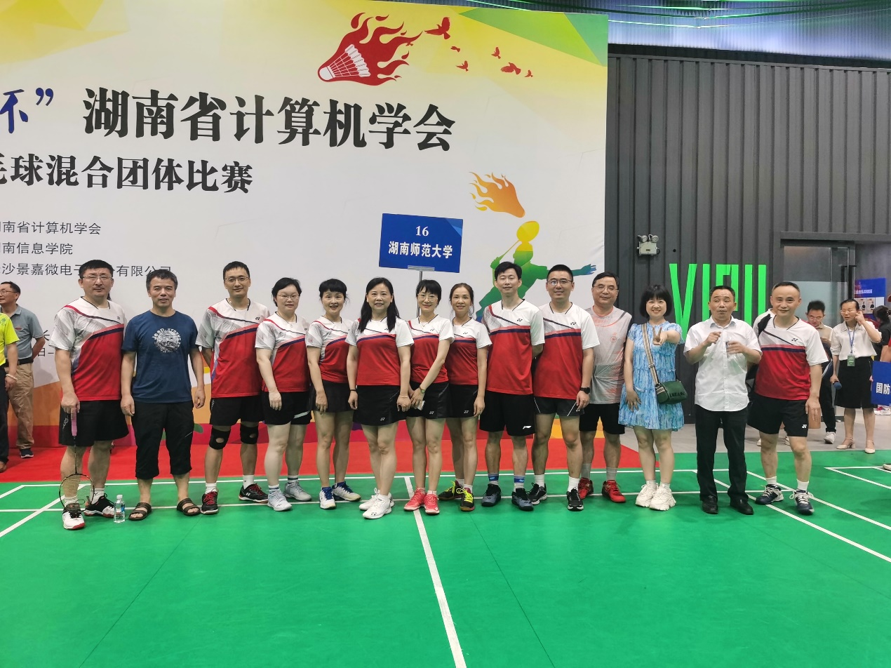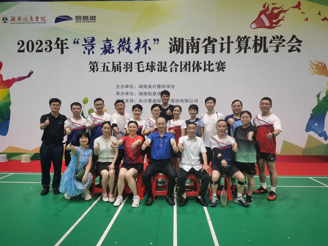 7月7-8日,2023年“景嘉微杯”湖南省计算机学会第五届羽毛球混合团体赛在长沙市乐运魔方羽毛球馆举行。本次比赛由湖南省计算机学会主办,湖南WilliamHill体育承办。WilliamHill体育WilliamHill体育羽毛球队由副校长杨震、院党委书记李常枫和副院长唐文胜带队,派出了14人的队伍参赛。其他队员还有:刘宏、张连明、李希、罗迅、徐大宏、肖伟、童钊、肖柳明、李迎九、李静、魏书宁。