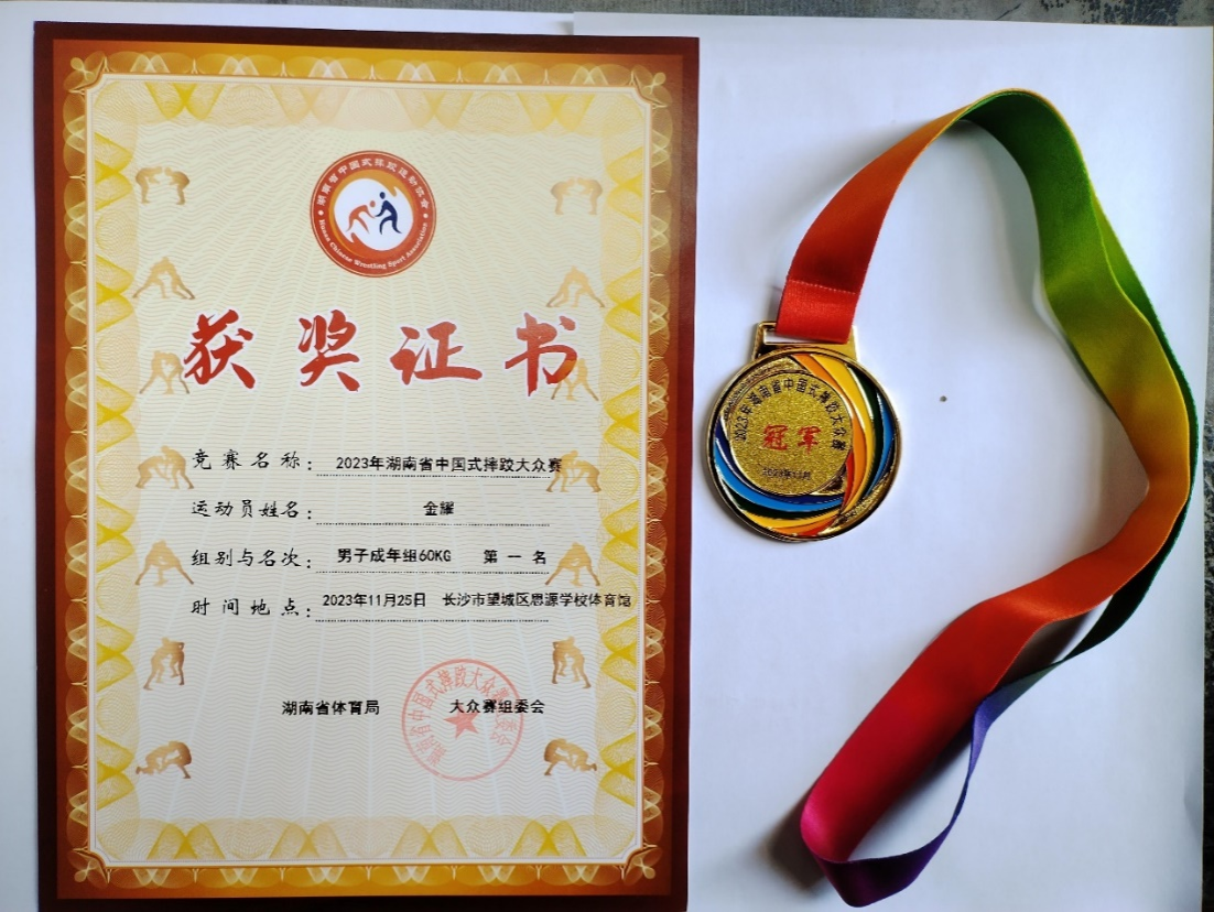 (曾锦意)在11月24日到26日举办的2023年湖南省中国式摔跤大众赛中,工程与设计学院教师金耀经过激烈角逐,闯入决赛,并最终以绝对优势击败对手,获得男子竞技个人赛成年组60KG级别第一名,同时还获得“优秀运动员”荣誉称号。