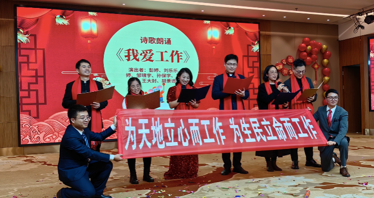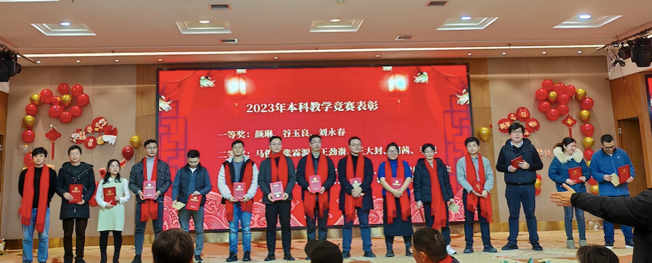 新春联欢会在新进青年教职工带来的布袋舞表演中正式拉开序幕,《爱如火》的欢快节奏,携着表演者对音乐的自我演绎和身姿扭动,场面令人捧腹。 肖汉仕、胡建新、戴卫东、陈晓红和邓志伟等退休教职工带来的老歌联唱给大家带来了一场充满激情与感动的音乐盛宴。年已七十五岁的赵景云副书记给大家带来独舞《天边》,可谓是一曲天边心陶醉,苍穹天空鸿雁起,牵引着大家的思绪飞向大草原。行政工会小组带来的改编版合唱《爱你》,将日常工作和与学生的互动融入歌词,把师生之间的情意刻画得淋漓尽致,其中展现出来的付出与无悔令人感动。哲学系工会小组带来的诗歌朗诵《沁园春•我爱上班》既有深刻的哲学思辩,又将青椒们的生活日常跃然纸上,诙谐又不失优雅,精准每一位辛勤工作者的生活点滴,迎来台下一大片强烈共鸣。政行学系工会小组带来的《高校时光组曲》激励着大家面对生活中的不如意,怀着对美好未来的向往,咬紧牙关继续奔跑,做到心中有梦想,脚下有力量,力创属于自己的精彩人生。在这追逐梦想的路上,不可或缺的还有爱的力量,我们在生活旅途中相互扶持,共同成长,传递着无尽的爱。社会学工会小组带来的《相亲相爱》将晚会又一次推向高潮。作为压轴重头戏,2023年度本科教学竞赛颁奖表彰在大家的翘首期盼中姗姗来迟。30位老师获得个人奖励,三个教学团队得到表彰。最后,余望成书记率学院领导班子登台,集体给在场的所有教职员工送上新春祝福。