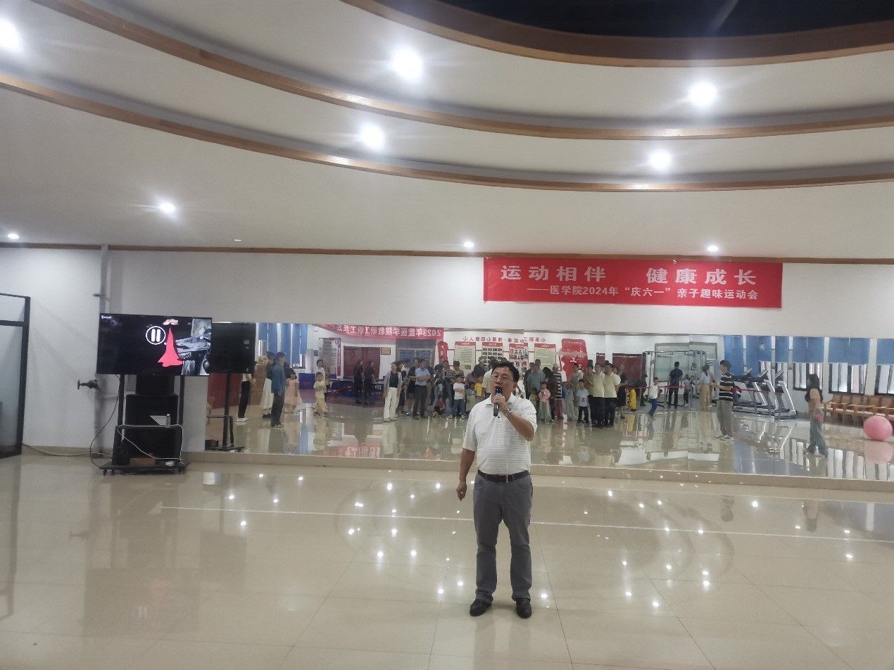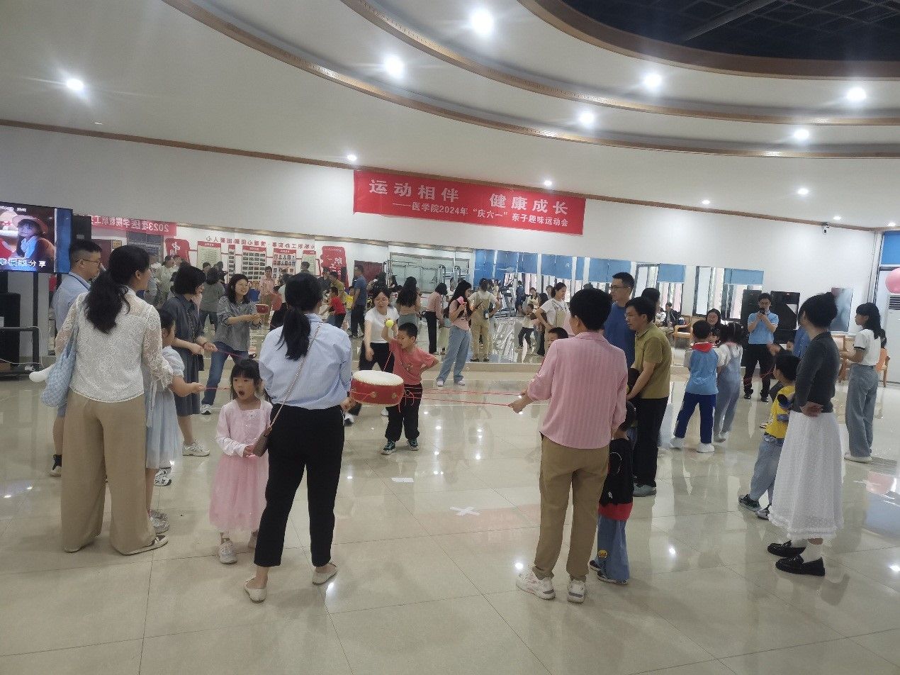6月1日上午,在“六一”国际儿童节到来之际,医学院“运动相伴 健康成长”“庆六一”亲子趣味运动会在医学院教职工活动中心举行,来自医学院50余个家庭的100余位孩子们和家长参加了本次活动。医学院院长何祖平、党委书记鄢朝晖、工会主席袁仕善出席活动。