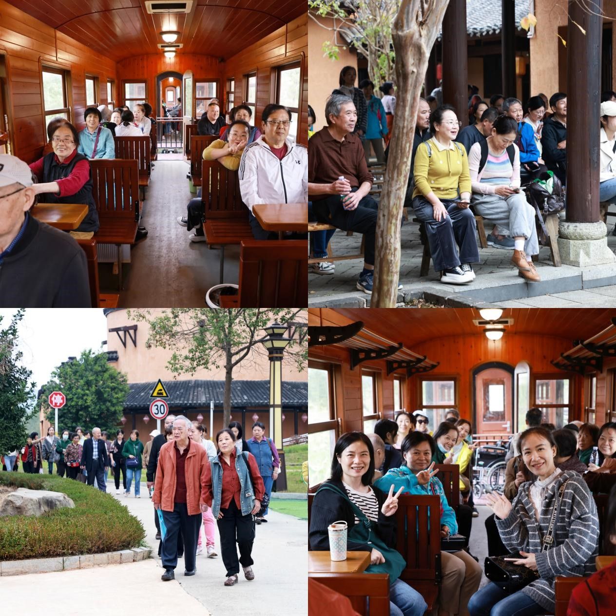 踏入园区,老师们穿过由古风灯笼组成的梦幻隧道,坐上了“开往春天的小火车”,欣赏沿途如诗如画的田园风光,感受着秋天的美好;在古镇小剧院,老师们兴致盎然地观看了情景剧《家国情怀》和《包公判案》,留下了深刻的印象;漫步在古镇老街,青青石板路、粉砖黛瓦墙、古式木板门,老师们纷纷合影留念,感受着老街曾经的繁华。