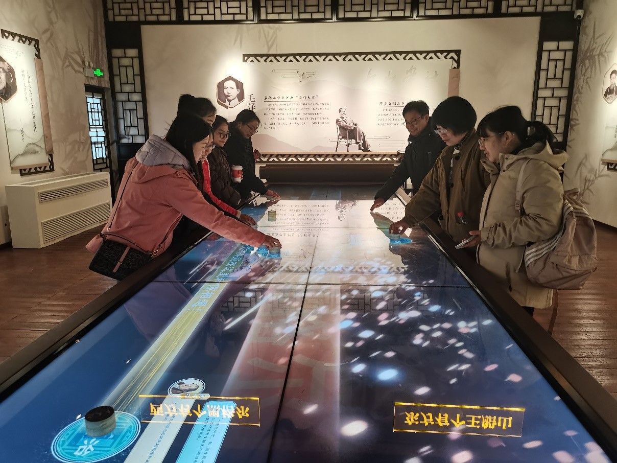 随后,老师们参观了清末最著名的船山书院。位于衡阳市雁峰区东洲岛的船山书院,打破传统书院静态展陈的表现方式,创新性运用大量的AR、VR、AI技术,让衡阳千年的历史长卷绘声绘色地展现在老师们面前。通过“数字人”王夫之的讲课、“水师传奇”动感影院、“飞跃衡阳”动感体验等项目,老师们在酣畅淋漓的体验中加深了对衡阳历史的了解,并切实感受了科技赋能给传统文化带来的魅力,对于WilliamHill体育文化育人的新方式有了更为深刻的思考。