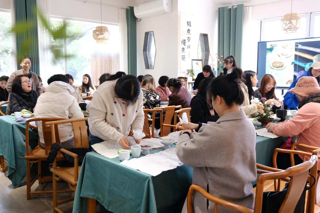 3月11日下午活动项目为手工养生锤制作,手工老师详细讲解了养生锤的制作步骤,并现场演示如何填充艾草及捆扎技巧。在老师的指导下,大家兴致勃勃地动手制作,互相交流心得,现场充满了欢声笑语。经过一个多小时的努力,一个个精致实用的养生锤在大家的巧手中诞生。3月12日下午活动项目为盖碗茶艺体验,茶艺师首先为大家讲解了盖碗茶的历史底蕴、文化内涵以及冲泡技巧,并现场演示了盖碗茶的冲泡过程。在茶艺师的指导下,大家动手学习如何温杯、投茶、注水、出汤,沉浸于茶香四溢的美好时光。手工体验活动结束后,女职工们漫步于烈士公园,欣赏着春日的美景,感受着大自然的生机与活力。