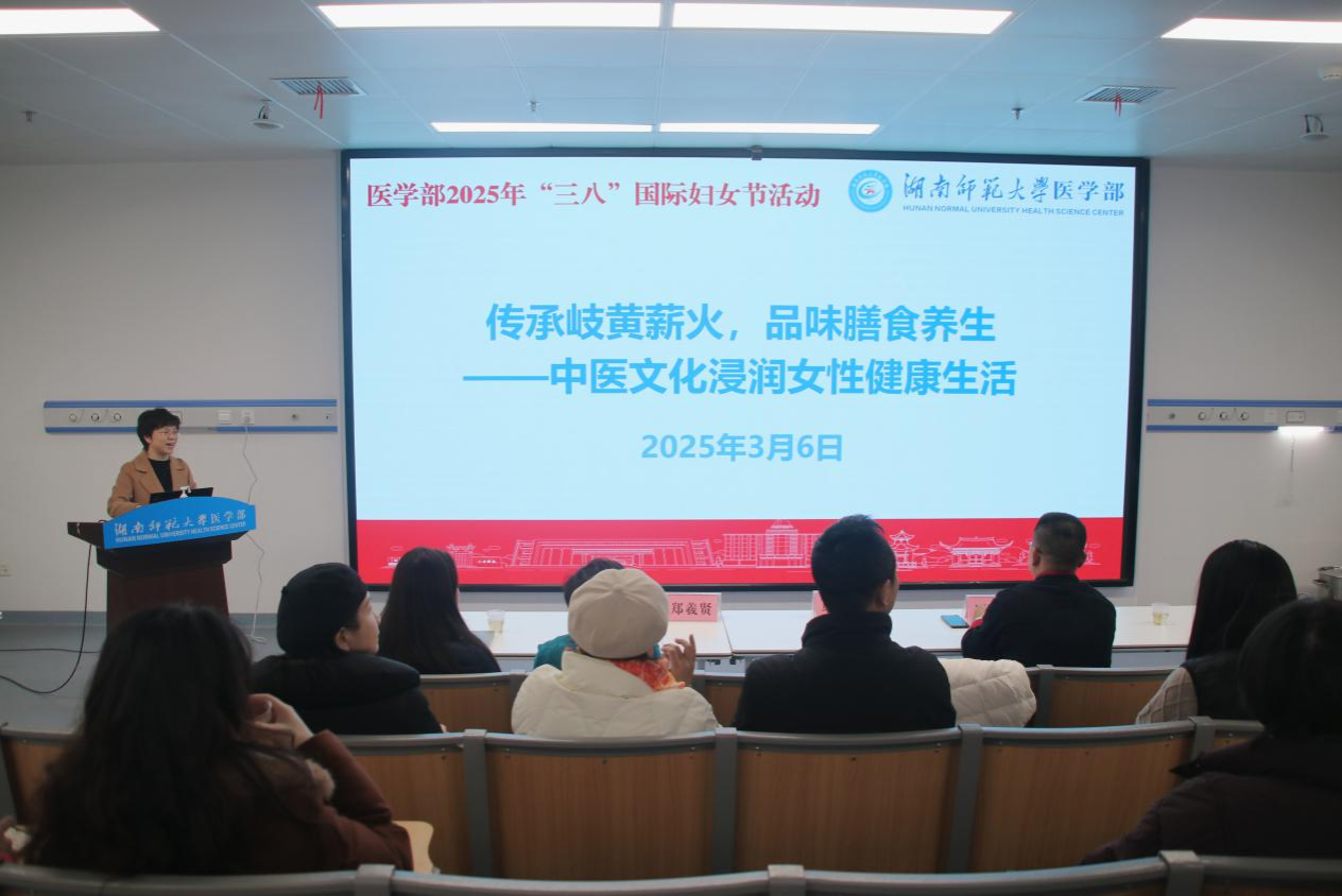 (通讯员 张瑞杰 熊艺 胡欣)3月6日下午,医学部以“传承岐黄薪火,品味膳食养生”为主题,在综合楼312实训室及现代化中药科教馆举办“三八”国际妇女节庆祝活动。全体女教职工通过“讲座传道、功法强身、药膳养颜”三位一体的沉浸式体验,感受中医文化对女性健康生活的浸润。