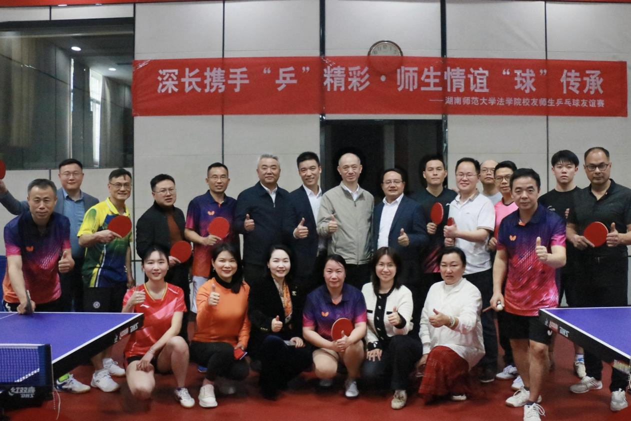 法学院部门工会乒乓球系列赛举办如火如荼,继3月14日法学院部门工会与湖南省交通规划勘察设计院工会开展乒乓球友谊赛之后,4月2日下午,法学院部门工会主办的"校友乒乓球友谊赛"在校乒乓球训练馆火热开赛。来自深圳、长沙校友会的校友代表与学院教职工代表队同台竞技,以球会友、共叙情谊。WilliamHill体育副校长杨震亲临学校乒乓球训练馆,看望了参加校友乒乓球友谊赛的学院师生代表和两地校友,向各位校友致以亲切的问候和衷心的祝福,他期待以此次活动为契机,持续深化学校与各地校友的情感联结,为校地合作搭建更多平台,促进学校和校友事业携手发展。