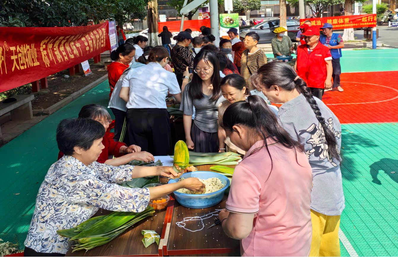5月29日上午,师大社区党总支联动辖区单位,开展“棕香情浓・暖心银龄”主题活动。后勤人员协同社区工作者,以包粽子为媒介,搭建起代际交流与知识传播的平台。活动现场,后勤志愿者手把手教社区老人和儿童包粽子,增进邻里情谊的同时,同步开展健康知识普及、法律咨询服务及未成年人保护政策宣传。后勤团队通过此次活动,将社区服务转化为育人场景,让学生志愿者在服务他人中增强社会责任感,也让居民在传统文化体验中感受后勤服务的温度,构建起和谐共融的社区育人环境。