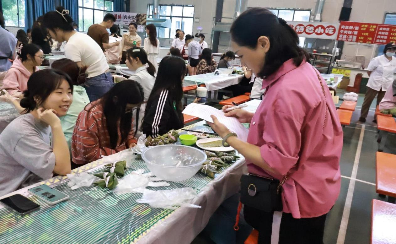 5月29日下午,咸嘉湖校区食堂二楼热闹非凡,一场别开生面的“趣玩端午・粽动员大作战”DIY包粽子活动在这里精彩上演。咸嘉湖校区后勤服务中心突破传统包粽模式,设置创意粽子设计环节,鼓励学生发挥想象力,制作造型独特的粽子。在这个过程中,后勤工作人员引导学生思考传统习俗与现代创新的结合,激发学生对传统文化传承的新思考。同时,后勤人员还组织学生开展粽子文化知识问答,加深学生对端午习俗历史渊源的了解。活动通过寓教于乐的方式,将传统文化教育与创新思维培养相结合,让学生在欢乐氛围中主动探索传统文化的魅力,增强文化自信与传承使命感。