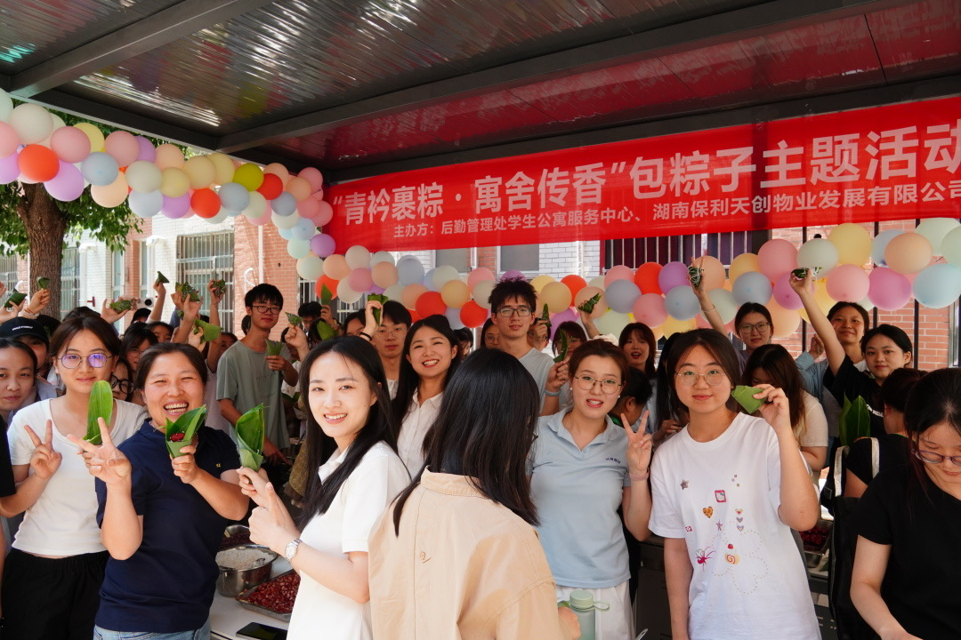 (通讯员易珊 王涛)端午临仲夏,时清日复长。为弘扬中华优秀传统文化,深化服务育人内涵,5月28日至29日,后勤管理处统筹后勤学生公寓服务中心、咸嘉湖后勤服务中心、桃花坪后勤服务中心及师大社区居委会,精心策划并开展了系列包粽子主题活动,让师生在传统习俗体验中感受文化魅力,在暖心服务中体会育人温度。活动现场,糯米、粽叶、红枣、咸蛋黄等食材整齐摆放,粽叶清香与欢声笑语交织。后勤工作人员化身“文化导师”,耐心指导师生折粽叶、填馅料、扎粽绳。从初学时的手忙脚乱,到熟练后的精巧成型,一个个形态各异的粽子承载着大家对传统习俗的探索与传承。