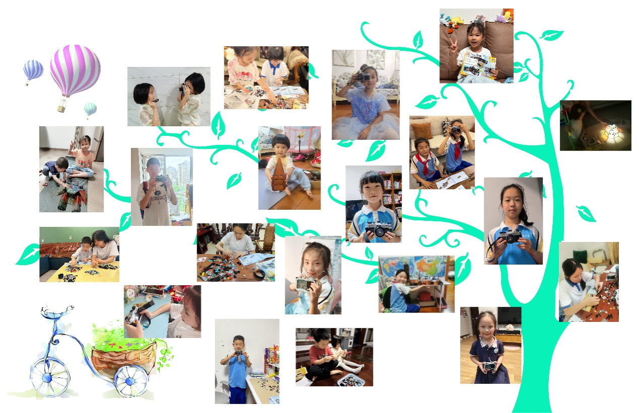 活动依托“花儿朵朵”亲子微信群开展,孩子们在规定时间内与爸爸妈妈共同完成了建构作品,并上传到群里分享展示。萌趣组(1—6岁)围绕“会移动的房子”主题,用磁力片发挥奇思妙想;创意组(7—14岁)凭借乐高积木,制作乐高相机、摄影机、电视机等作品,展现非凡创造力。