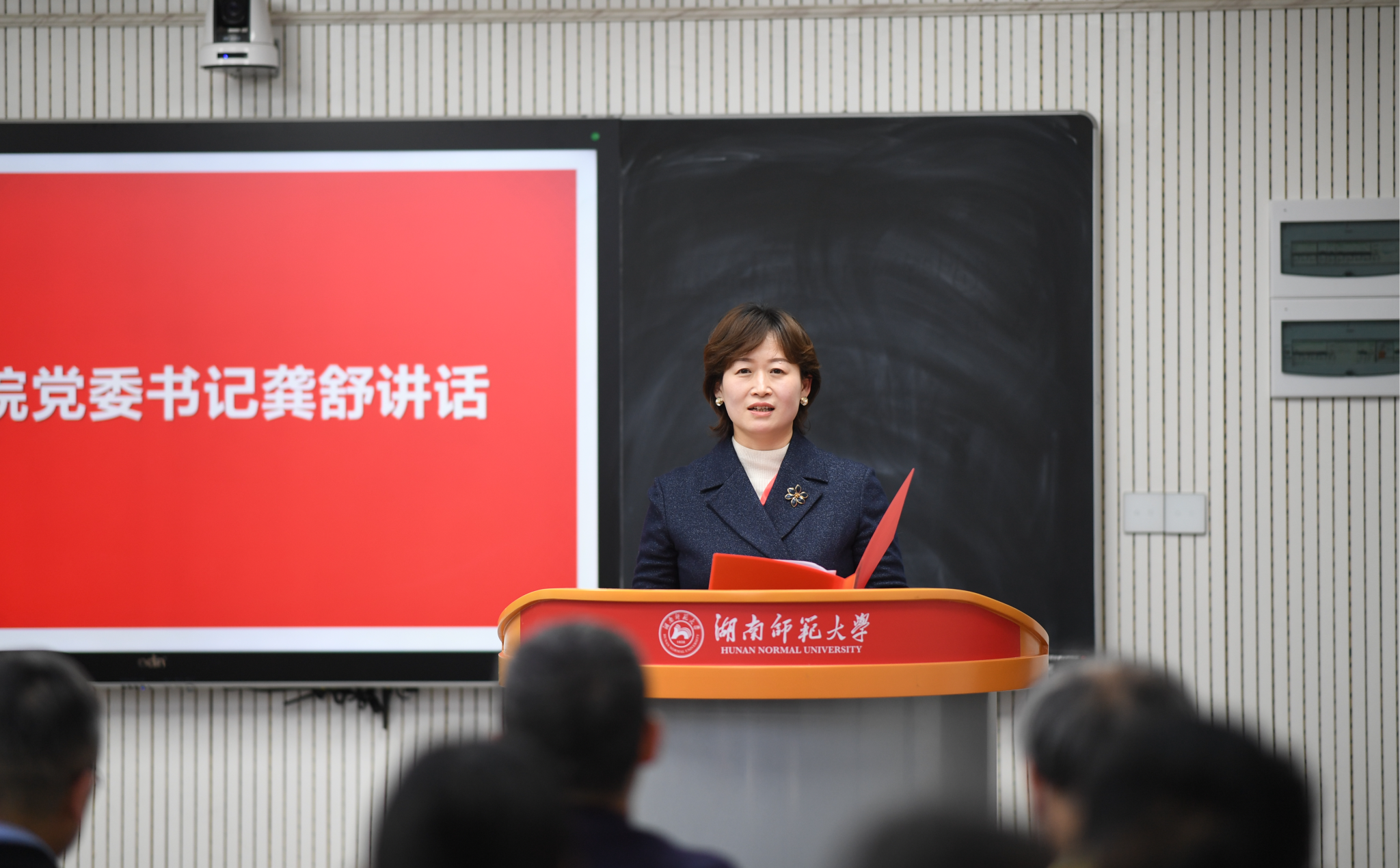 最后,院党委书记龚舒发表讲话。她向新当选的工会委员表示祝贺,对上一届工会班子的贡献予以肯定,并围绕发挥“双代会”桥梁纽带作用、建好温暖职工之家、聚焦学院中心工作推进高质量发展等方面提出要求,号召全院教职工凝心聚力、真抓实干,为学院事业发展和学校“双一流”建设贡献力量。