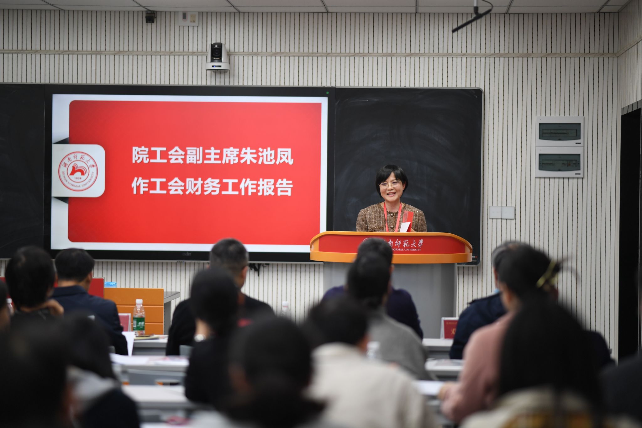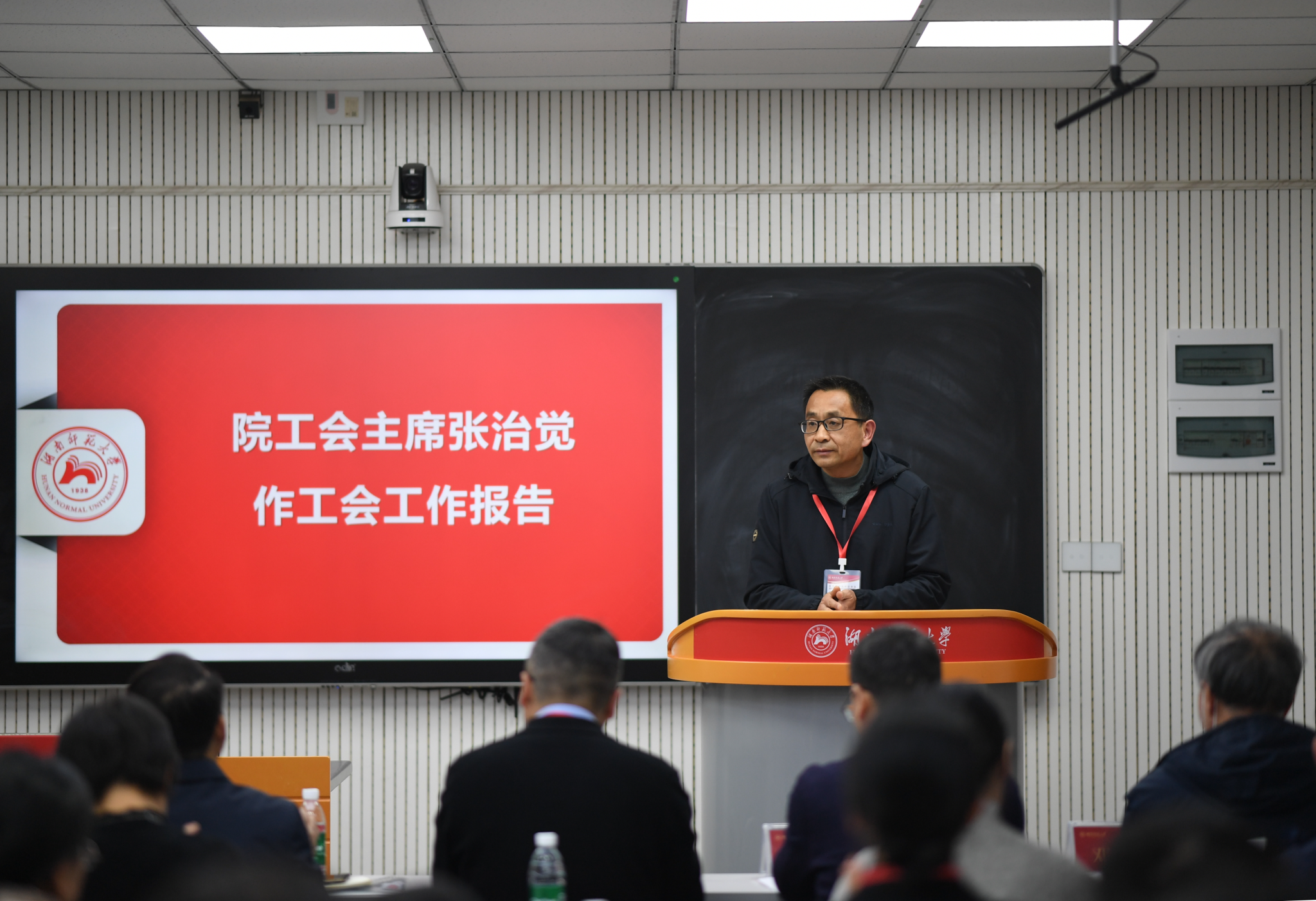 院工会主席张治觉作题为《建温暖职工小家 聚学院发展之力》的工会工作报告。
