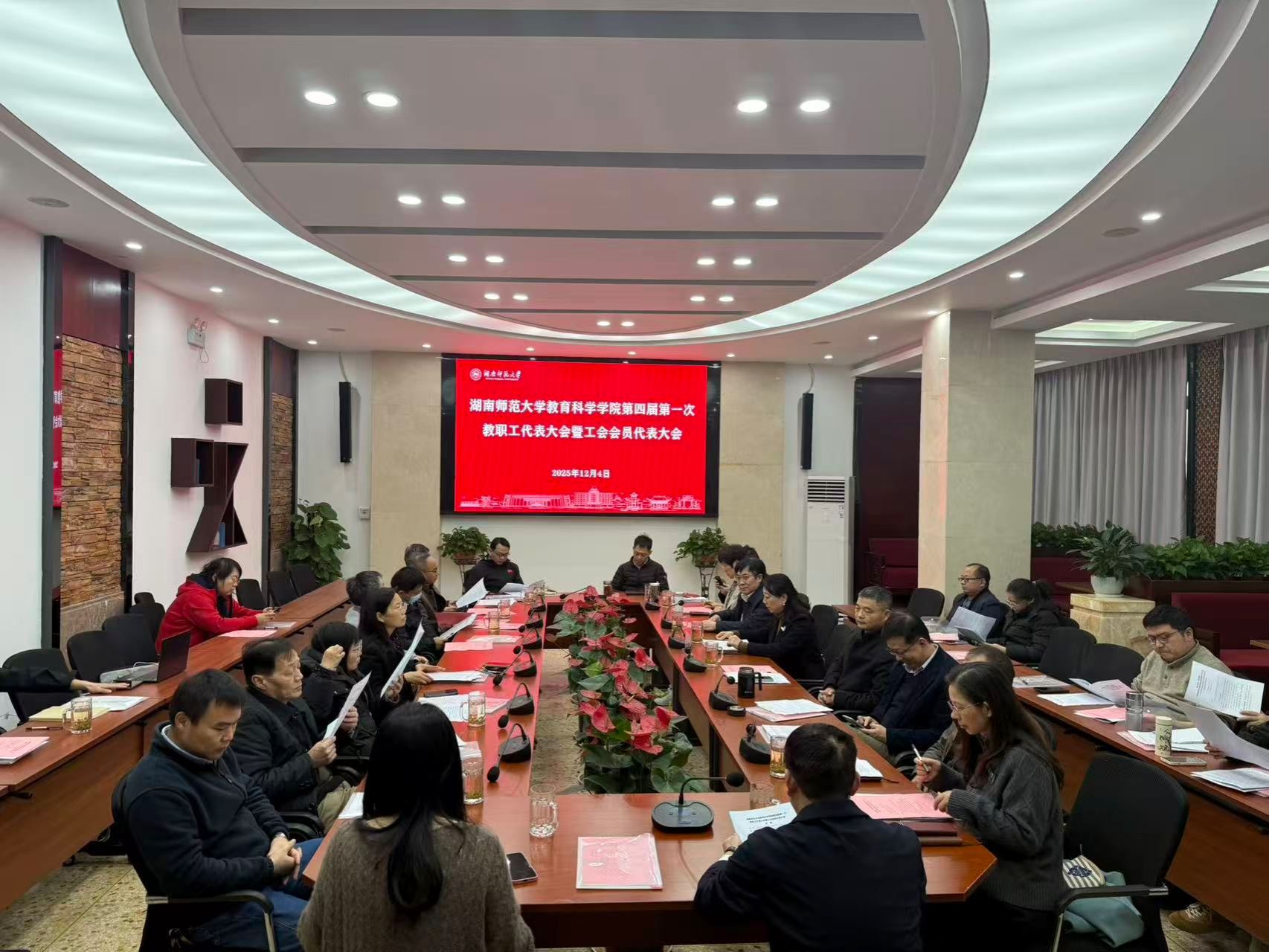 (通讯员 王曼宁)12月4日下午15:00,教育科学学院第四届第一次教职工代表大会暨工会会员代表大会在学院七楼会议室隆重召开。大会由学院工会主席姜新生主持,全体教职工代表齐聚一堂,共商学院发展大计,共绘工会工作新蓝图。