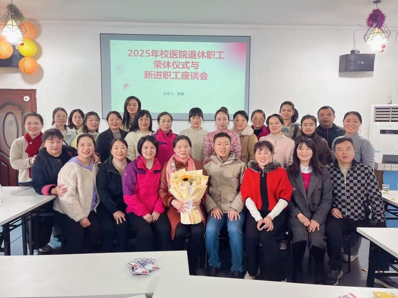 荣休职工座谈会上,孟文华作代表发言,动情回顾了在校医院二十余载行医历程,“能将最美好的年华奉献给挚爱的医学事业,守护校园师生健康,是我一生的荣幸”。朴实真挚的话语道出了老一辈医务工作者的坚守与情怀,打动了在场每一个人。与会人员纷纷回忆与孟文华等同志的共事时光,高度认可荣休职工精湛的专业技术、严谨的工作作风与始终如一的敬业精神 。新进职工代表李琬婷表示将传承前辈的优良传统,在推动医院高质量发展的征程中接好接力棒。 全宏姣盛赞荣休职工的职业风范与人格魅力,她衷心感谢老同志们的长期奉献与坚守,祝福退休生活幸福快乐。她强调,此次座谈会既是对退休同志辛勤付出的致敬,更是一堂生动深刻的职业教育课,“服务师生健康”始终是医院工作的核心使命,希望新进职工尽快融入集体,恪尽职守,与全体同仁共同提升医疗服务水平。刘斌表示“前辈的智慧与汗水铸就了医院今日的坚实基础。我们不仅要铭记前辈的卓越贡献,更要将这份精神薪火代代相传”。接着两位新进职工代表向孟文华前辈献上鲜花,以鲜花寄敬意,以掌声送祝福。