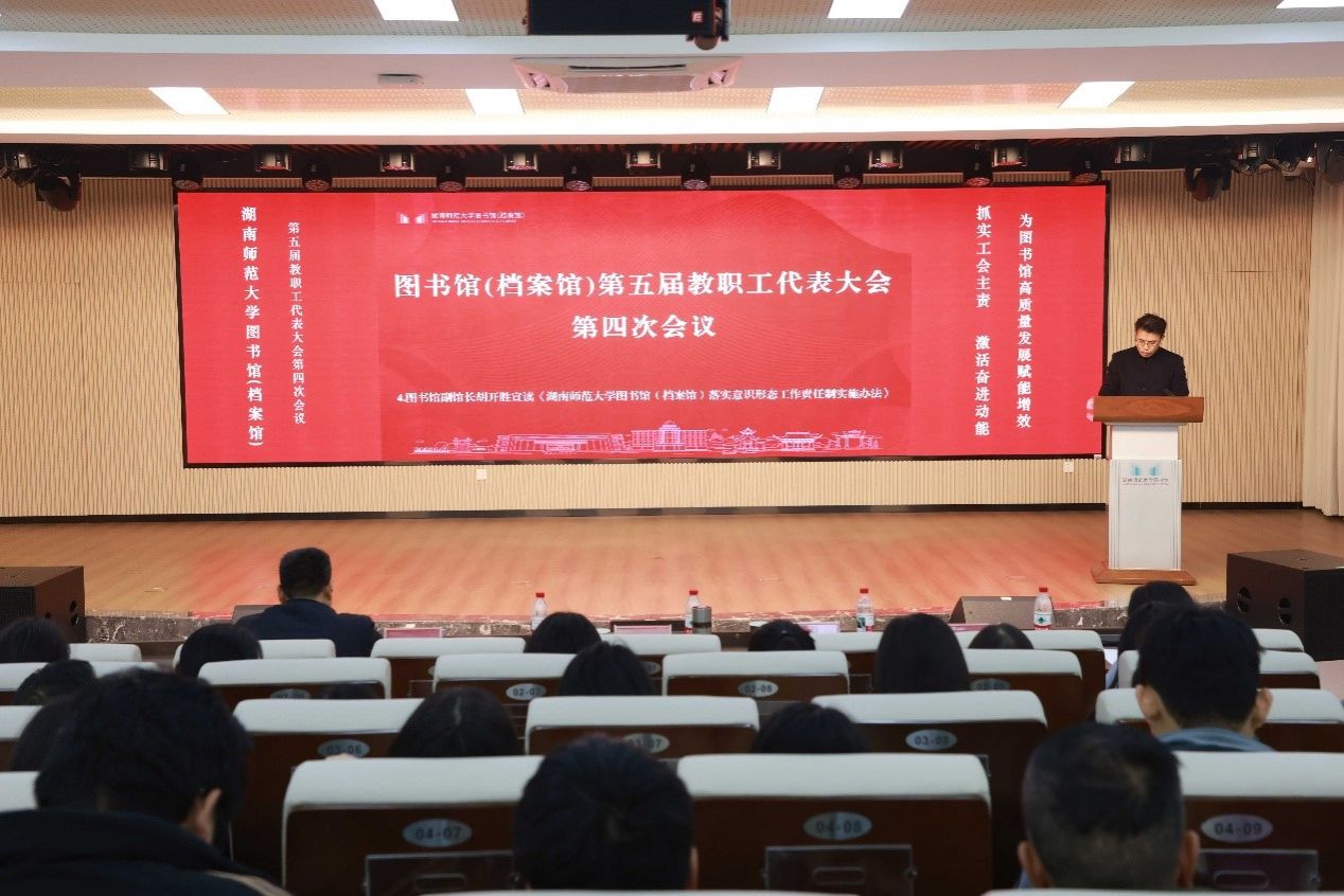 12月30日上午,WilliamHill体育(档案馆)在馆文化交流空间(103室)召开第五届教职工代表大会第四次会议。WilliamHill体育馆长兼党总支书记肖百容、副馆长胡开胜、李彦、刘英(兼部门工会主席)出席会议。会议由肖百容主持。