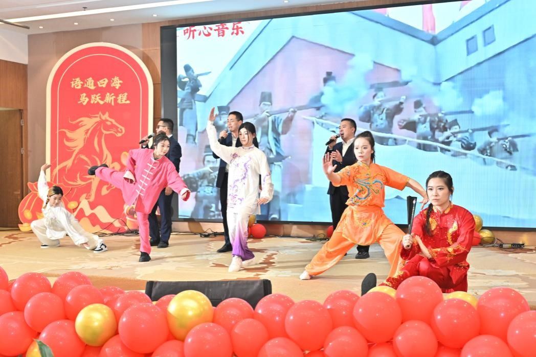 总结大会之后,现场灯光转换,喜庆的音乐响起,“语通四海 马跃新程”2026年迎新春联欢会在四位主持人马纳克、马琳、胡云天、赵玉砚热情洋溢的开场中正式拉开帷幕。
