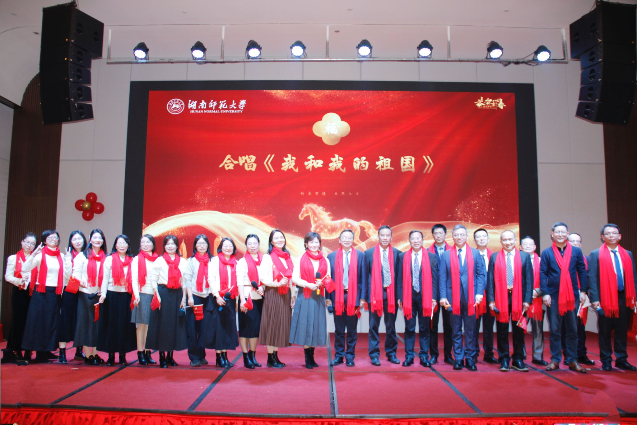 在精彩的文艺表演环节,来自工会委员、行政人员和教师代表的 17 位女教职工带来舞蹈新编《饿狼传说》,动感舞姿瞬间点燃现场气氛;7 位在读幼儿园的小明星献上幼儿歌舞串烧,天真烂漫的演绎引得全场阵阵掌声;学院领导班子、行政办公室代表携手李军、何勇、刘杰三位特邀嘉宾,以普通话与方言交融的独特形式带来诗朗诵《我爱上班》,幽默中饱含温情;李姣、向晖、王新、滕莎四位老师演唱的经典老歌《漫步人生路》婉转悠扬;青年教师组带来的话剧《真男人》情节生动、笑点密集;工会不老舞团的男老师们演绎舞蹈串烧《大展鸿图+青苹果乐园》活力四射;系主任们带来朗诵《立德树人担使命,五系同心开新篇》,彰显了教育工作者的责任与担当。压轴环节中,由 20 多位教授博导组成的 “实力唱将合唱团”,携手刘怀德校长、龚舒书记、曹虹剑院长等领导,共同唱响《我和我的祖国》,悠扬歌声中满是对祖国的热爱与对教育事业的赤诚。