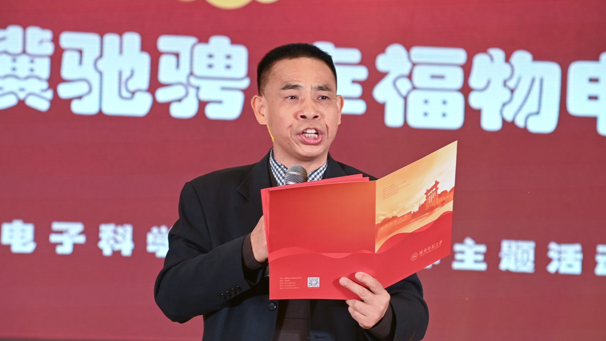 湖南三书礼文化发展有限公司董事长苏文华校友也带来了真挚的分享。他感慨道,是物电学院的培养为自己的创业之路奠定了坚实基础,多年来始终感恩母校的教诲与关怀。他对学院给予的信任与支持表示感谢,期待未来能与学院在更多领域深化校企合作,实现互利共赢,并送上新春祝福。