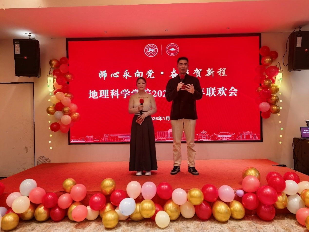 (供稿 王婷 张自强)1月16日下午,地理科学学院举办“师心永向党,奋进新征程”教职工新年联欢会。院长周国华代表学院向全院师生员工、退休老同志和关心支持学院发展的校友、社会各界人士,致以衷心感谢和新年美好祝愿。他简要回顾了学院过去一年在学科建设、教学科研、人才培养等各方面取得的成绩,并对学院新一年的建设发展作了展望。