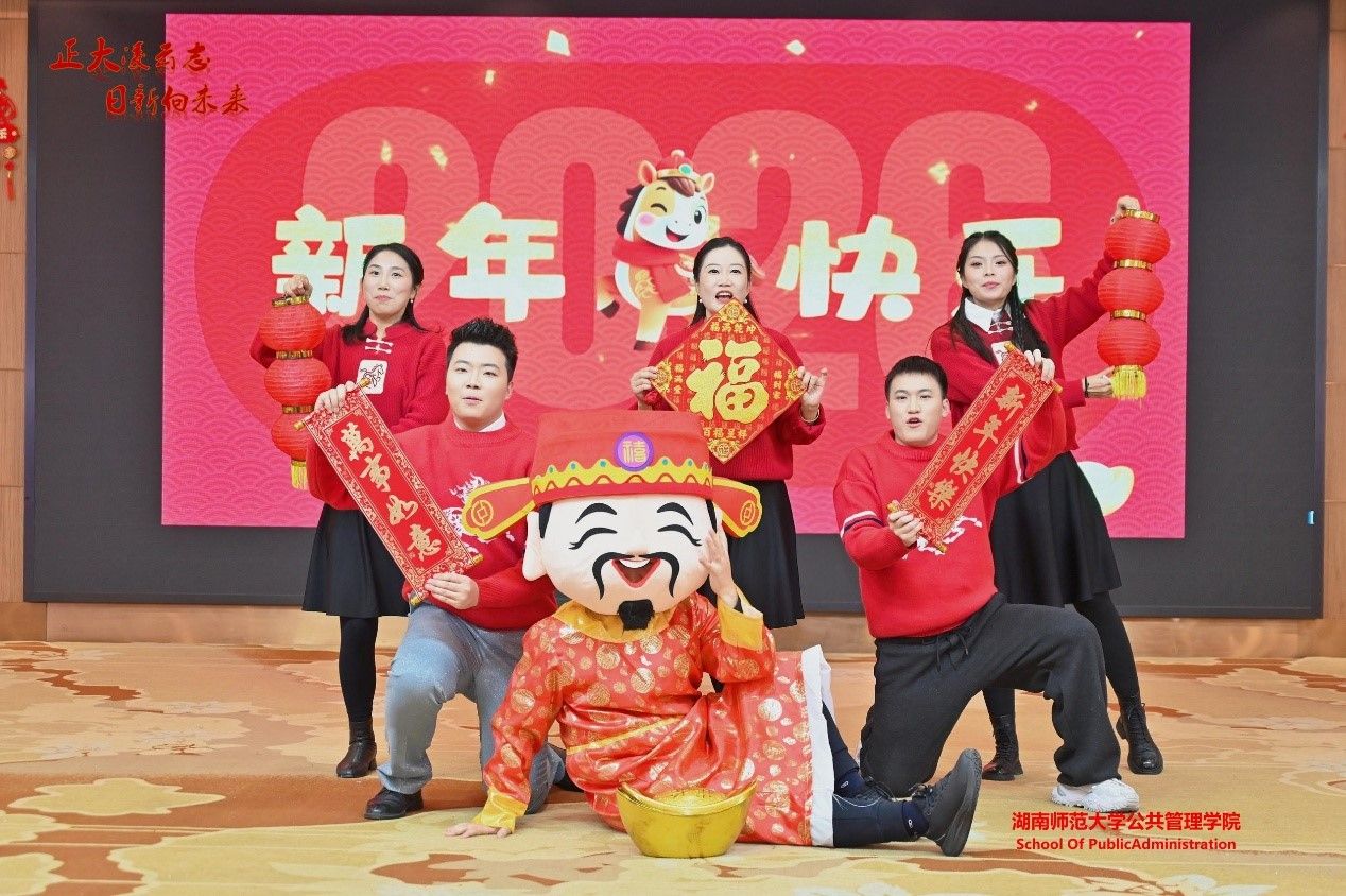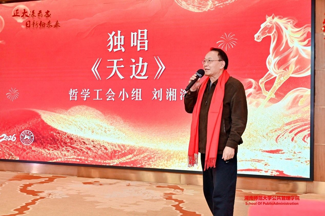 (通讯员 胡守勇)岁律更新,春祺已至。1 月19 日下午,通程麓山大酒店内暖意融融、欢声满堂,公共管理学院 “大美师大 日新公馆” 2026年教职工新春联欢会圆满举行。马克思主义学部主任唐未兵应邀出席,学院全体教职员工、离退休人员欢聚一堂,共话过往成就,同迎新春佳节,在欢声笑语中凝聚奋进力量。
