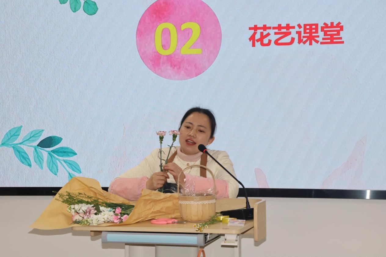 鄢朝晖代表医学部党工委向全体女教职工致以节日的诚挚问候和美好祝福。她指出,花艺创作追求的是自然和谐、匠心独运,而医学教育事业同样需要精益求精、追求完美的“匠心”精神和对生命美好的守护。她鼓励老师们在学习和实践中,将花艺所蕴含的美学理念与日常教育教学工作有机结合,以美育人、以美化人,引导学生发现美、欣赏美、创造美,培养德才兼备的医学人才。最后,她充分肯定了全体女教职工在推动医学部各项事业发展中所作出的贡献,并勉励大家面对即将开启的“十五五”发展新征程,继续发扬“巾帼不让须眉”的精神,为医学部高质量发展拼搏奋斗。