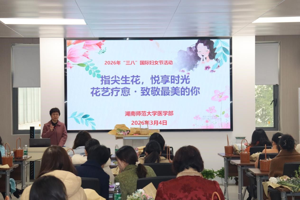 (通讯员 黄鸿剑)为庆祝2026年“三八”国际妇女节,3月4日中午,医学部工会在仁医楼206举行“指尖生花,悦享时光”——花艺疗愈・致敬最美的你主题活动。医学部党工委副书记鄢朝晖、党工委办公室主任杨洁芳、医院管理处副处长何平平、工会主席袁仕善等出席活动,医学部全体女教职工参加活动。