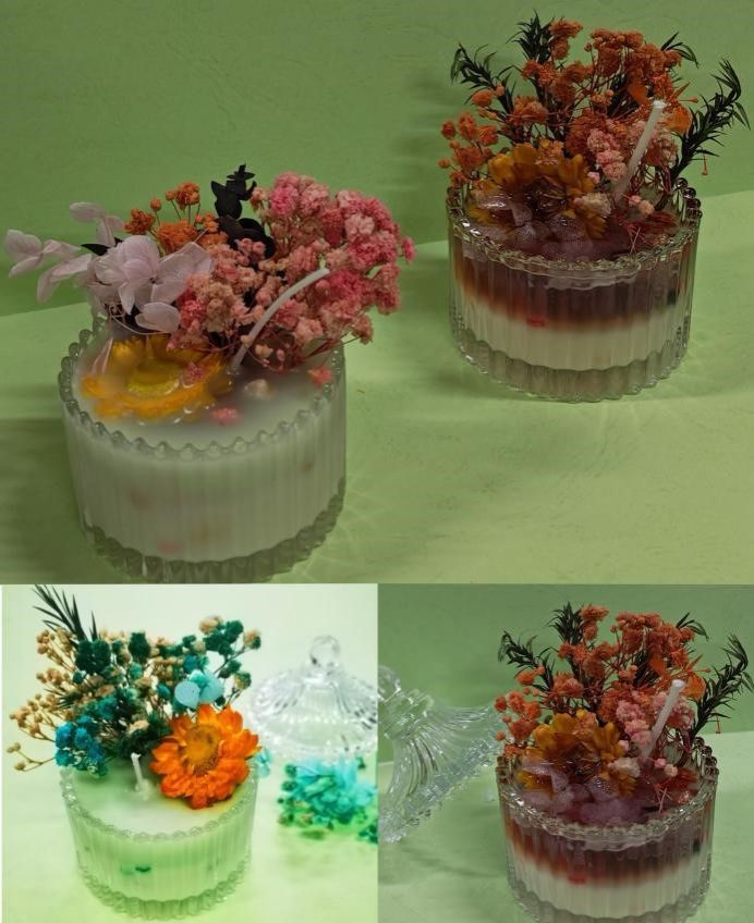 活动现场,指导老师为大家介绍了香薰蜡烛的制作工艺、香氛精油的选择与搭配,以及蜡烛的燃烧与安全注意事项。在轻松愉悦的氛围中,大家纷纷动手挑选喜爱的香型,将大豆蜡、植物精油与干花巧妙融合,通过加热、调色、注模、冷却等一系列工序,一个个造型精美、芬芳四溢的香薰蜡烛在巧手下诞生。