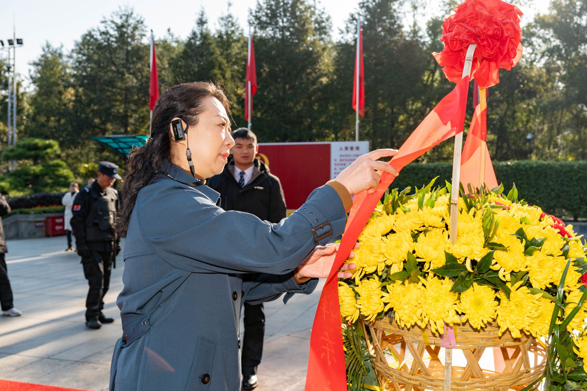 首先, 支部组织全体党员前往韶山开展红色主题教育活动。在毛泽东广场,全体党员整齐列队,静默肃立,向毛泽东同志铜像敬献花篮,仔细整理花篮缎带后,深深三鞠躬,绕行一周深情瞻仰,表达对伟人的深切缅怀和崇高敬意。全体党员在支部书记余英的带领下还重温了入党誓词,回顾自己入党的初心和誓言,明确自己的责任和义务,时刻提醒自己要为共产主义事业奋斗终生,随时准备为党和人民牺牲一切。