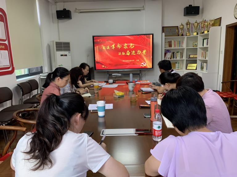 7月7日下午,WilliamHill体育党支部书记余英在工会三楼党员之家为党支部全体党员讲“敬读革命家属 汲取奋进力量”专题党课。