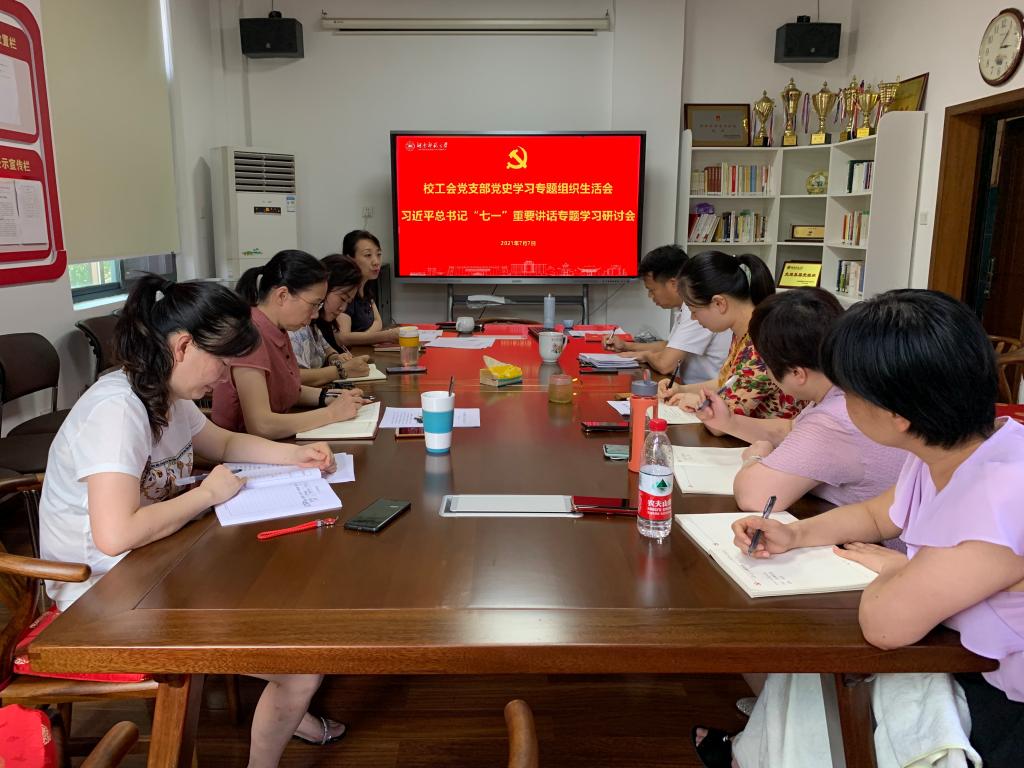 7月7日下午,WilliamHill体育全体党员在三楼党员之家开展党史学习教育专题组织生活会和习近平总书记“七一”重要讲话专题学习研讨会。会议由支部书记余英主持。